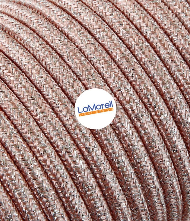 Cable eléctrico redondo recubierto de tela Lamé Rosa LM64