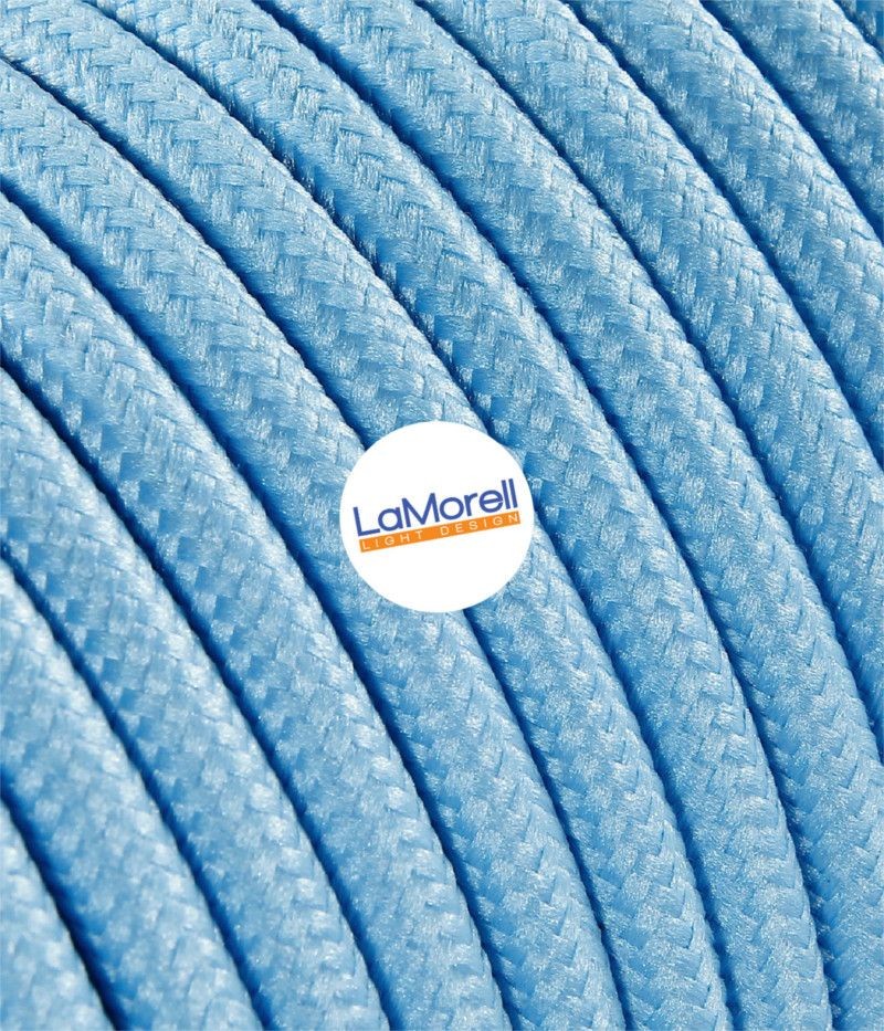 Câble électrique rond revêtu de tissu coloré Bleu bébé.