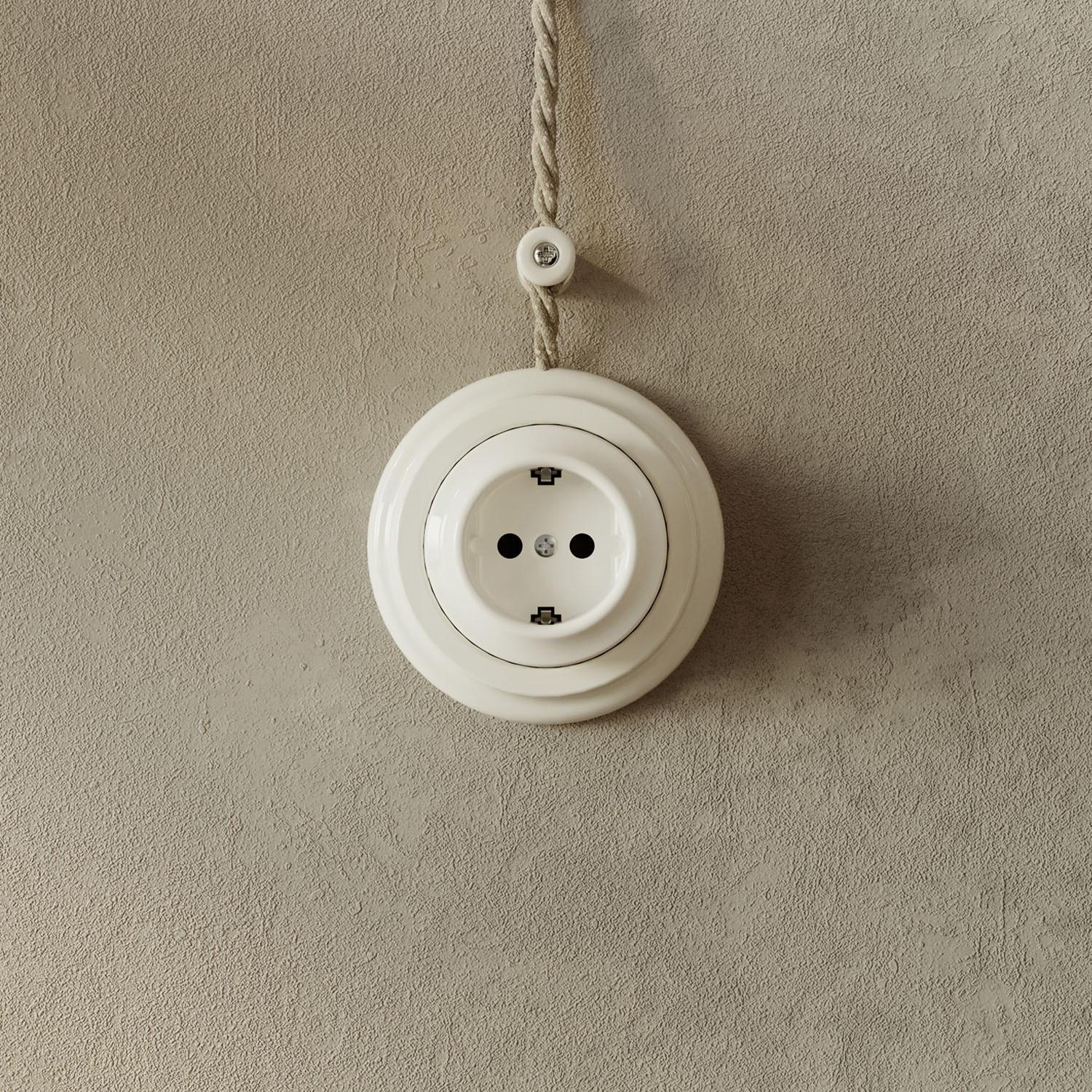 Base en porcelaine blanche pour interrupteurs/déviateurs et prises, adaptée pour créer des installations électriques vintage.