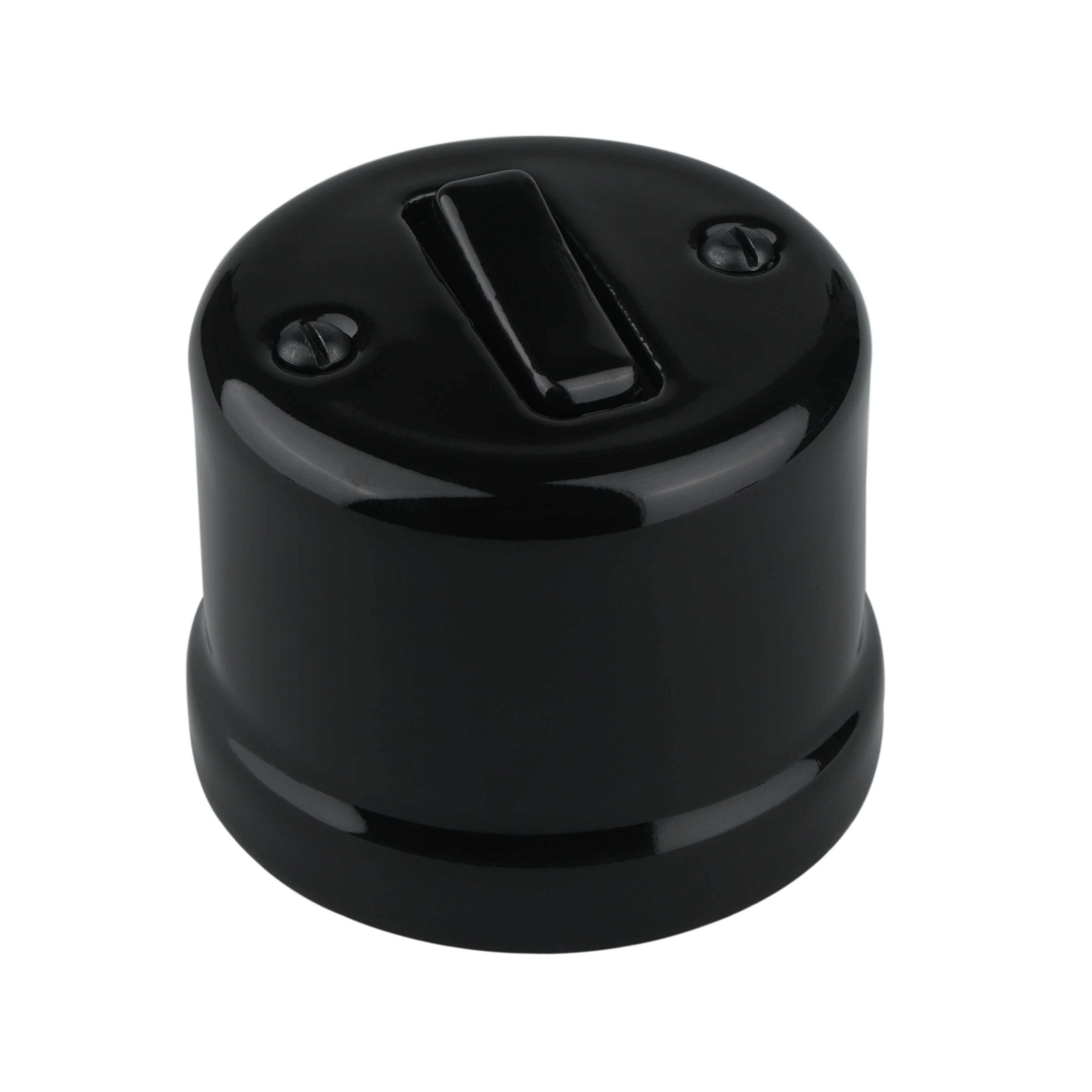 Interrupteur en porcelaine noire, 10A 250V adapté pour créer des installations électriques vintage.