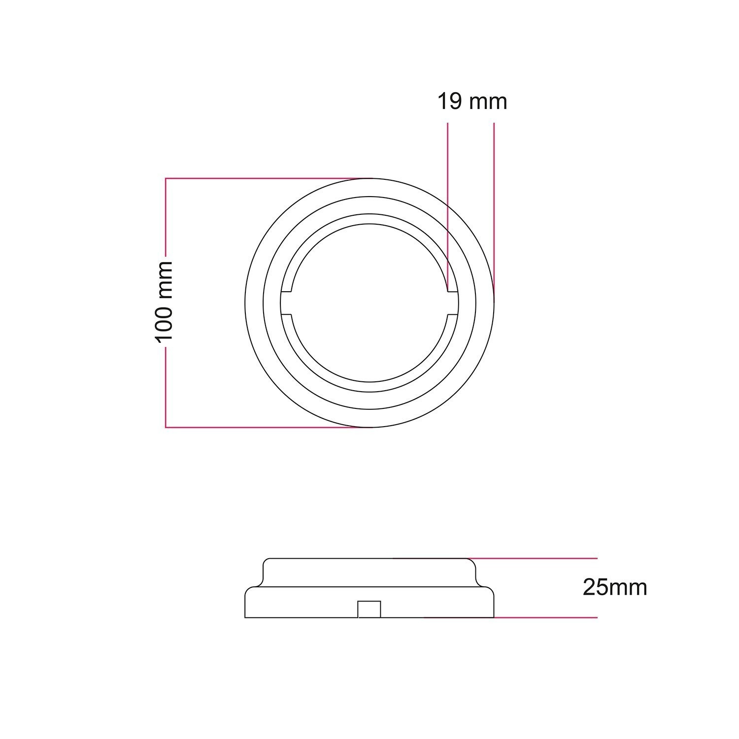 Diametro 100mm, Altezza 25mm.